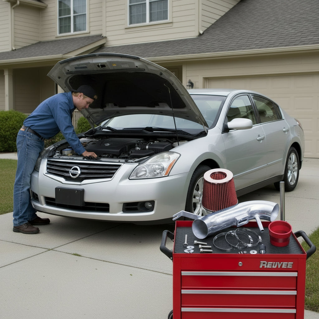 Votre Nissan Altima 2.5L est depuis des années la berline américaine par excellence : confortable, économique et raffinée. Mais sous cette apparence élégante se cache un moteur aux capacités bien supérieures. Le système d'admission d'origine privilégie le silence de fonctionnement au détriment des performances, en utilisant des conduits restrictifs qui limitent le flux d'air et brident le véritable potentiel de votre quatre cylindres 2.5L.