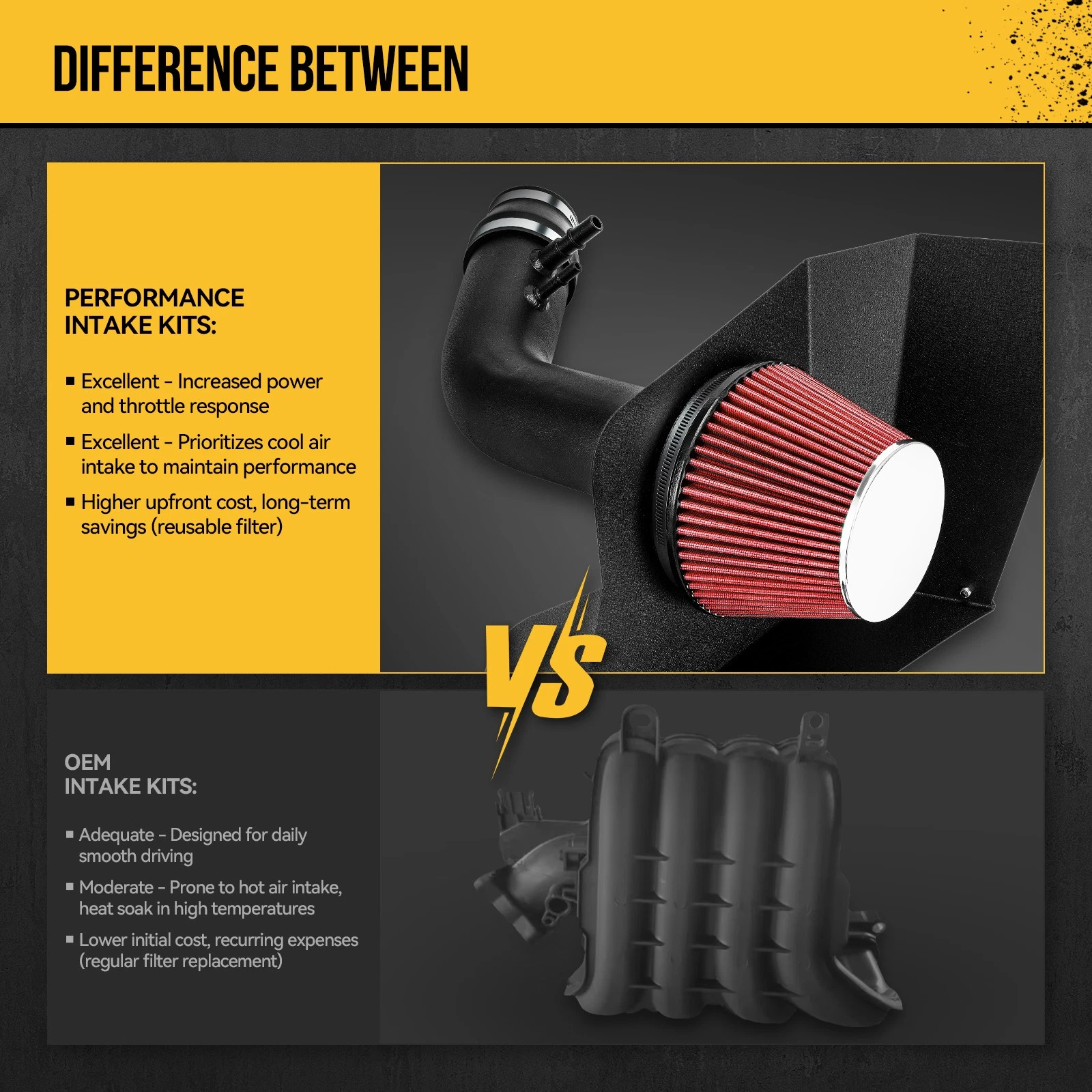 Achetez en toute confiance. En tant que spécialistes du réglage moteur, nous savons qu'une meilleure respiration du moteur se traduit par de meilleures performances. Ce kit s'installe facilement, sans aucune modification permanente du véhicule, et bénéficie du soutien de véritables experts automobiles. Nous recommandons une réinitialisation de la batterie après l'installation afin de permettre au calculateur de s'adapter aux nouvelles courbes de flux d'air.